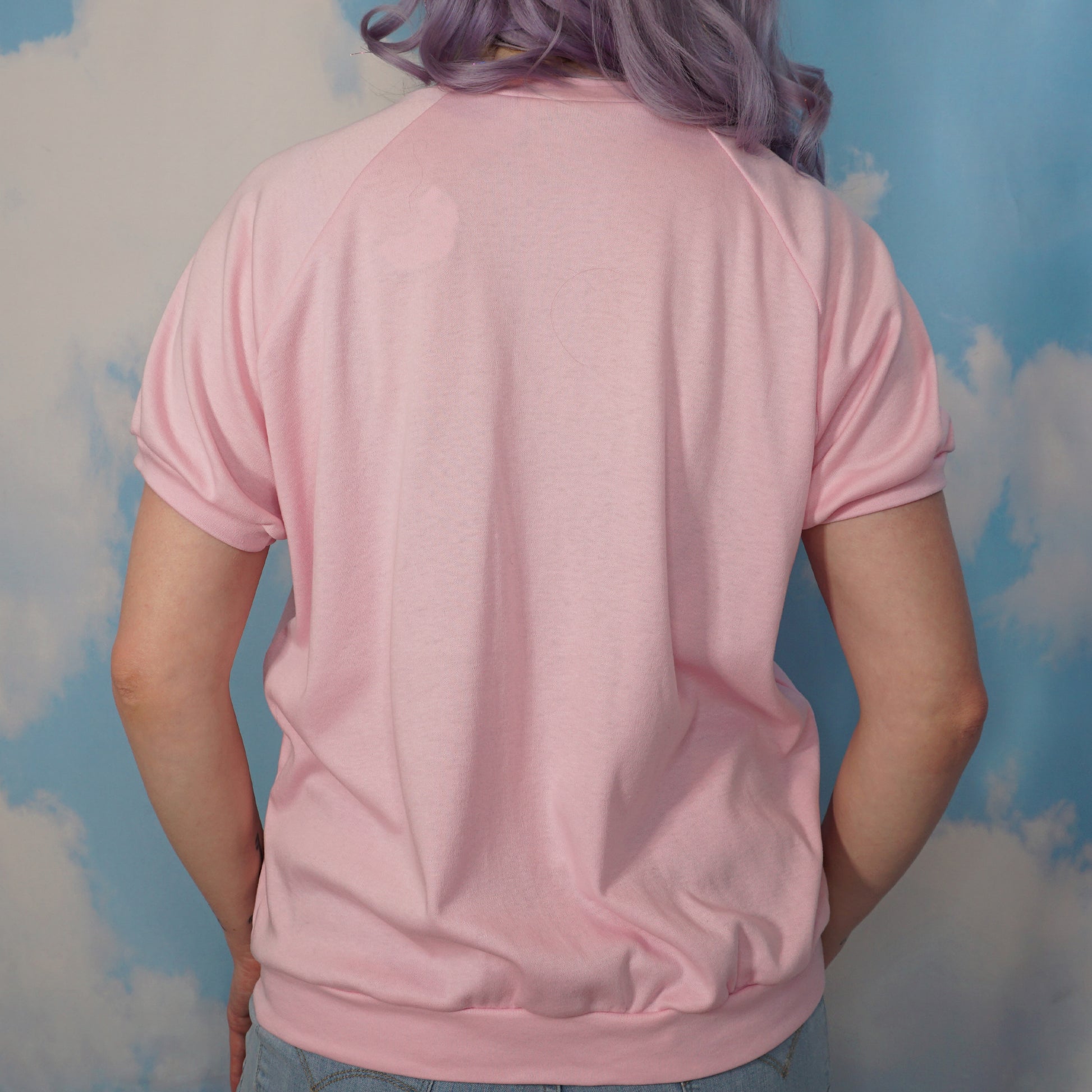 Upcycled pink shirt with pastel ice cream sequin patch on front. Size Large. One of a kind!