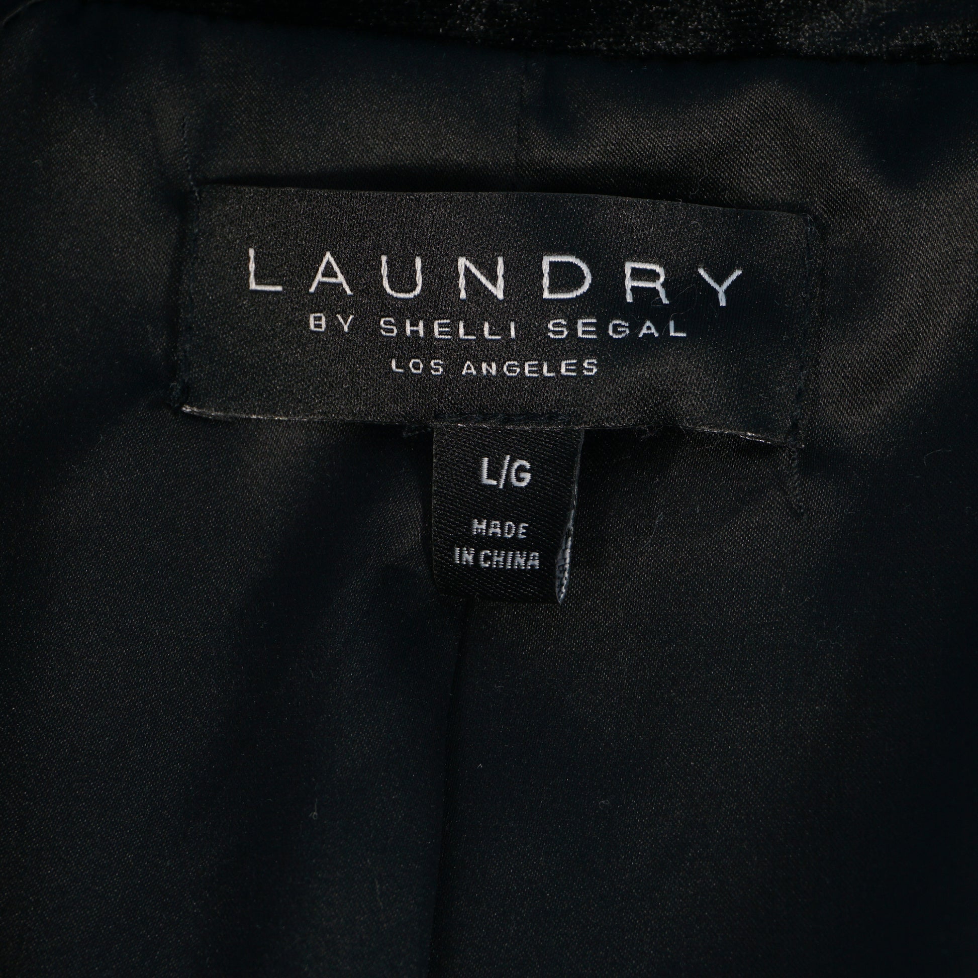 New without tags! Laundry by Shelli Segal black velvet stretch dinner jacket. Classy button details on the sleeves and satin accent on the lapel and pockets.