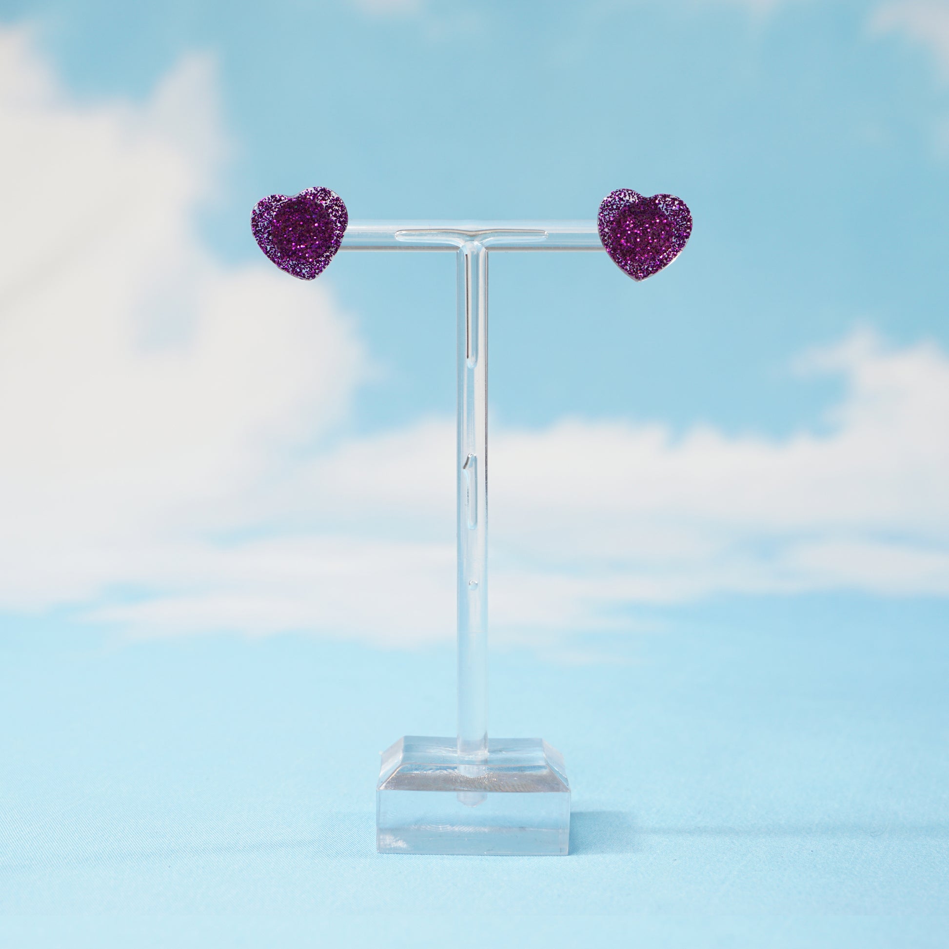 Resin Glitter Heart Stud Earrings. Light purple and dark purple options. More styles to come!