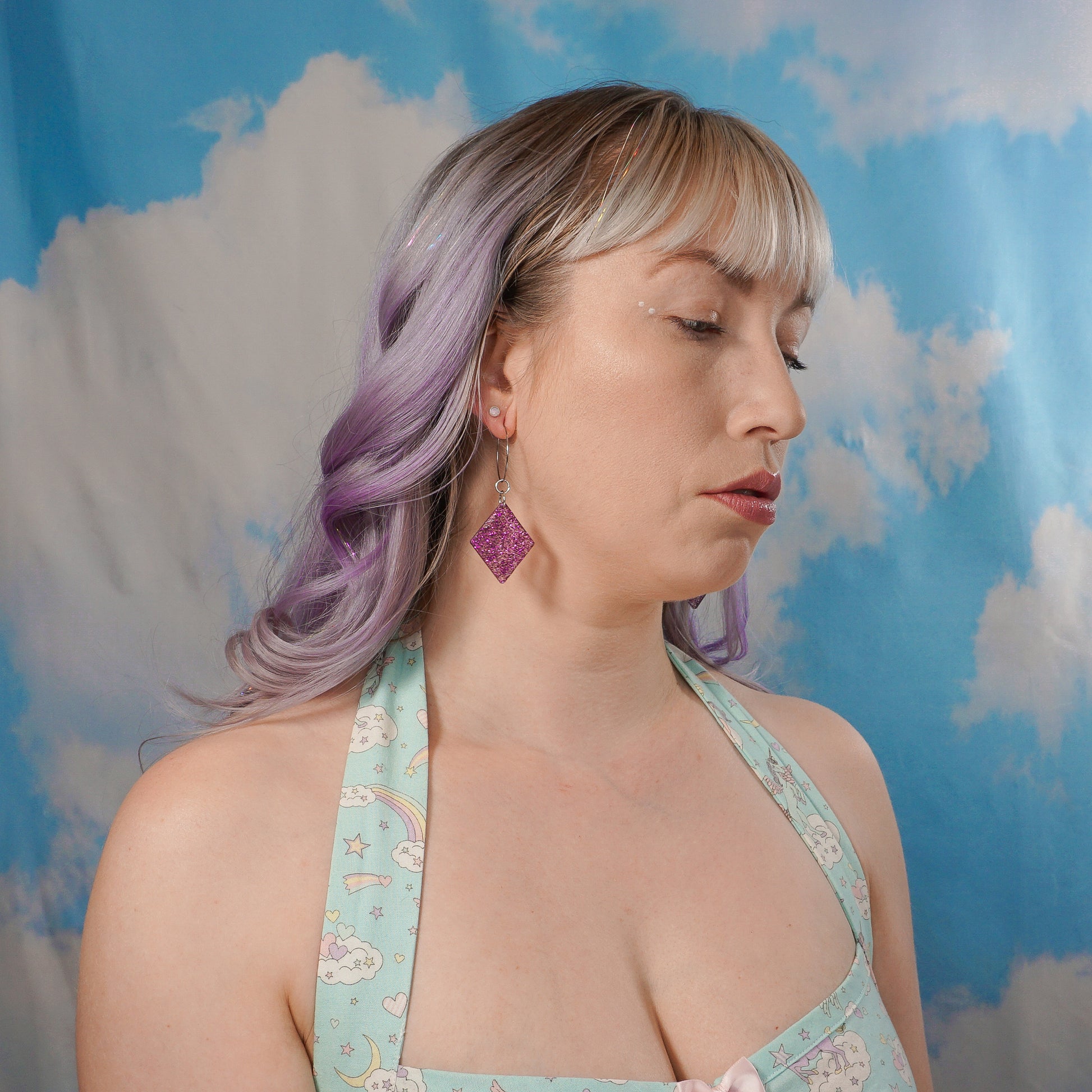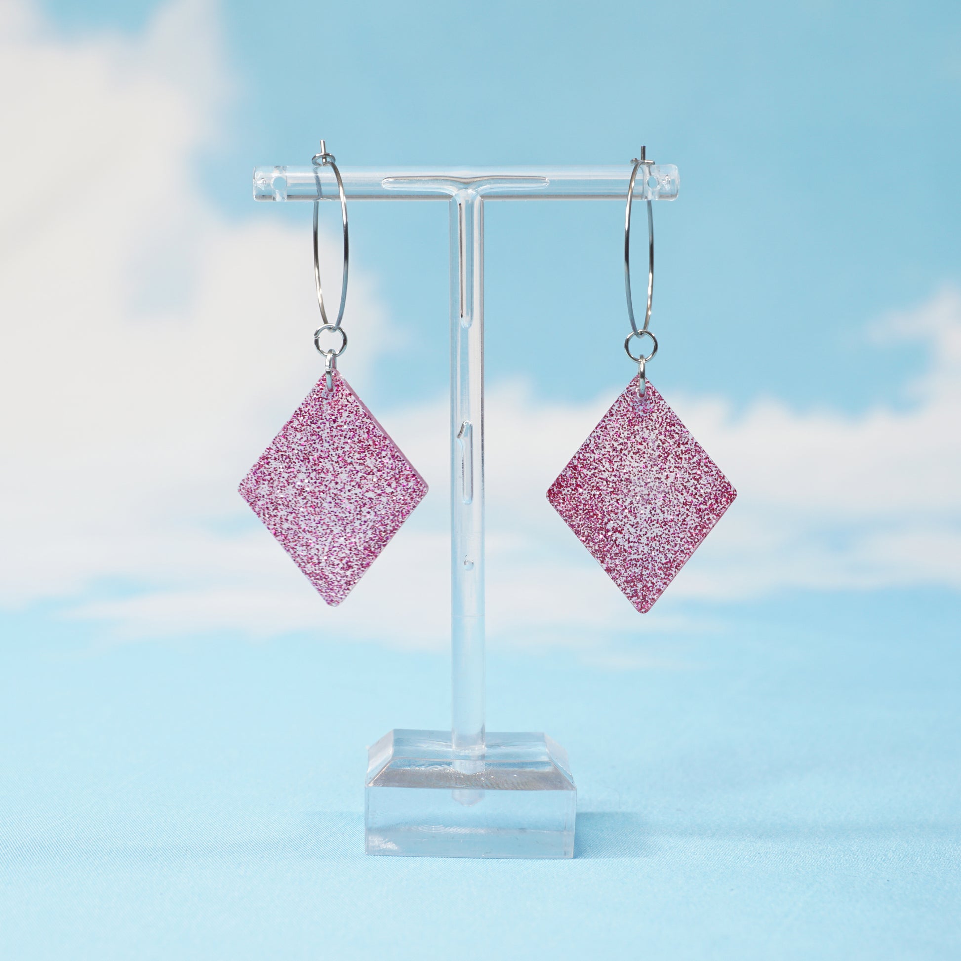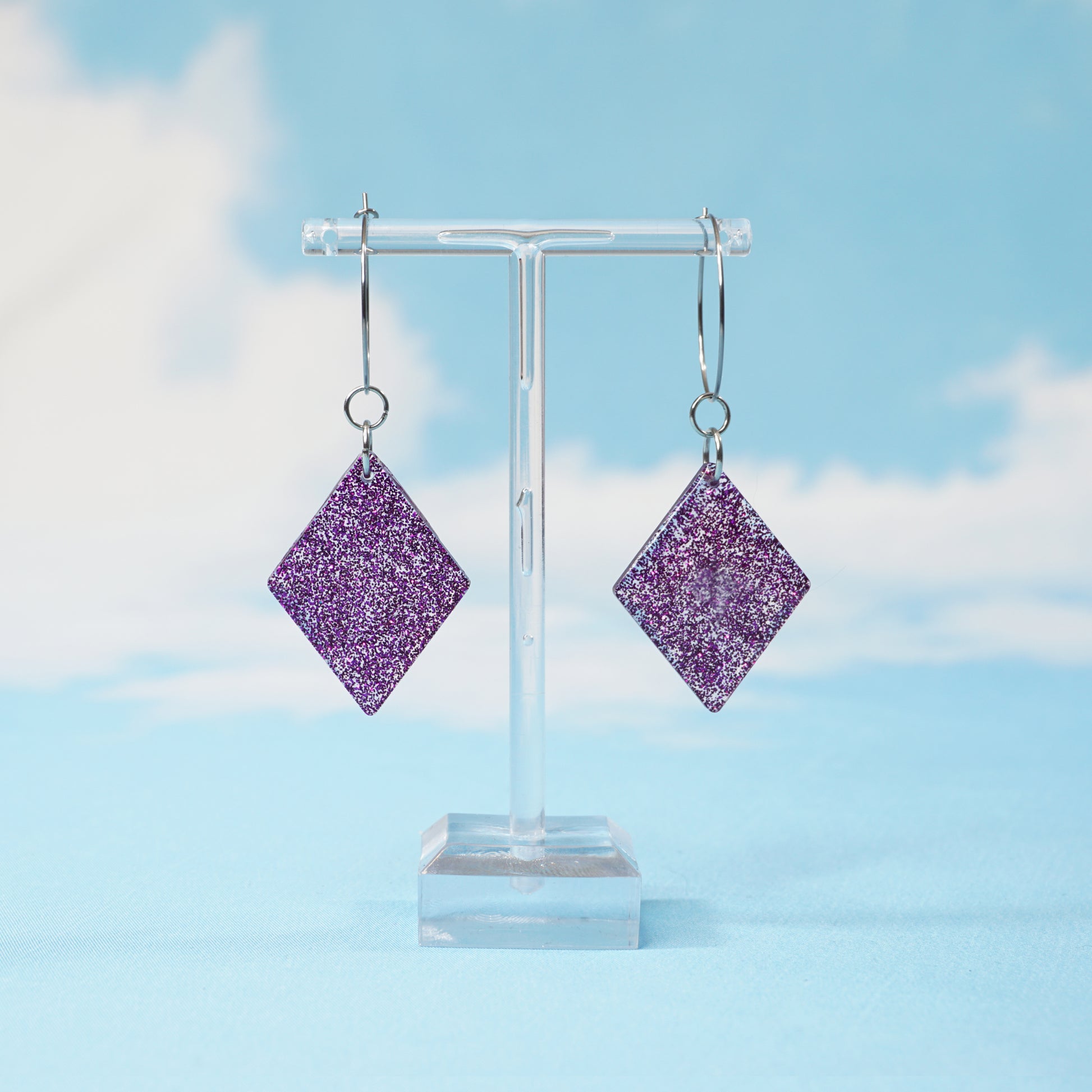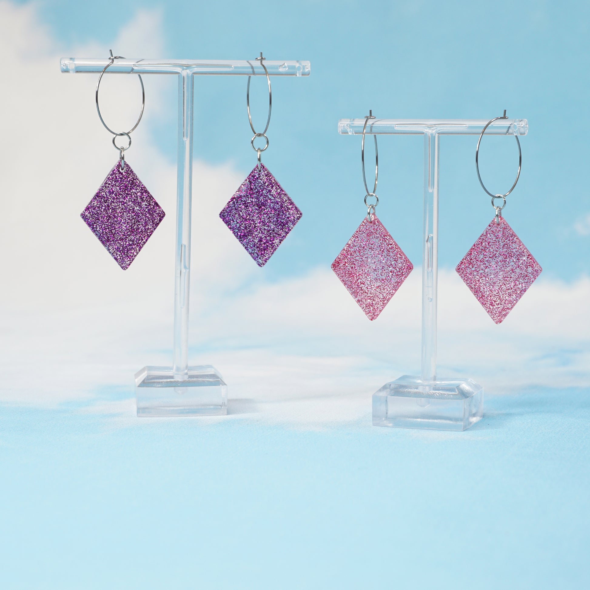 Glitter Diamond resin earrings. Purple or Pink options. More styles available upon request.