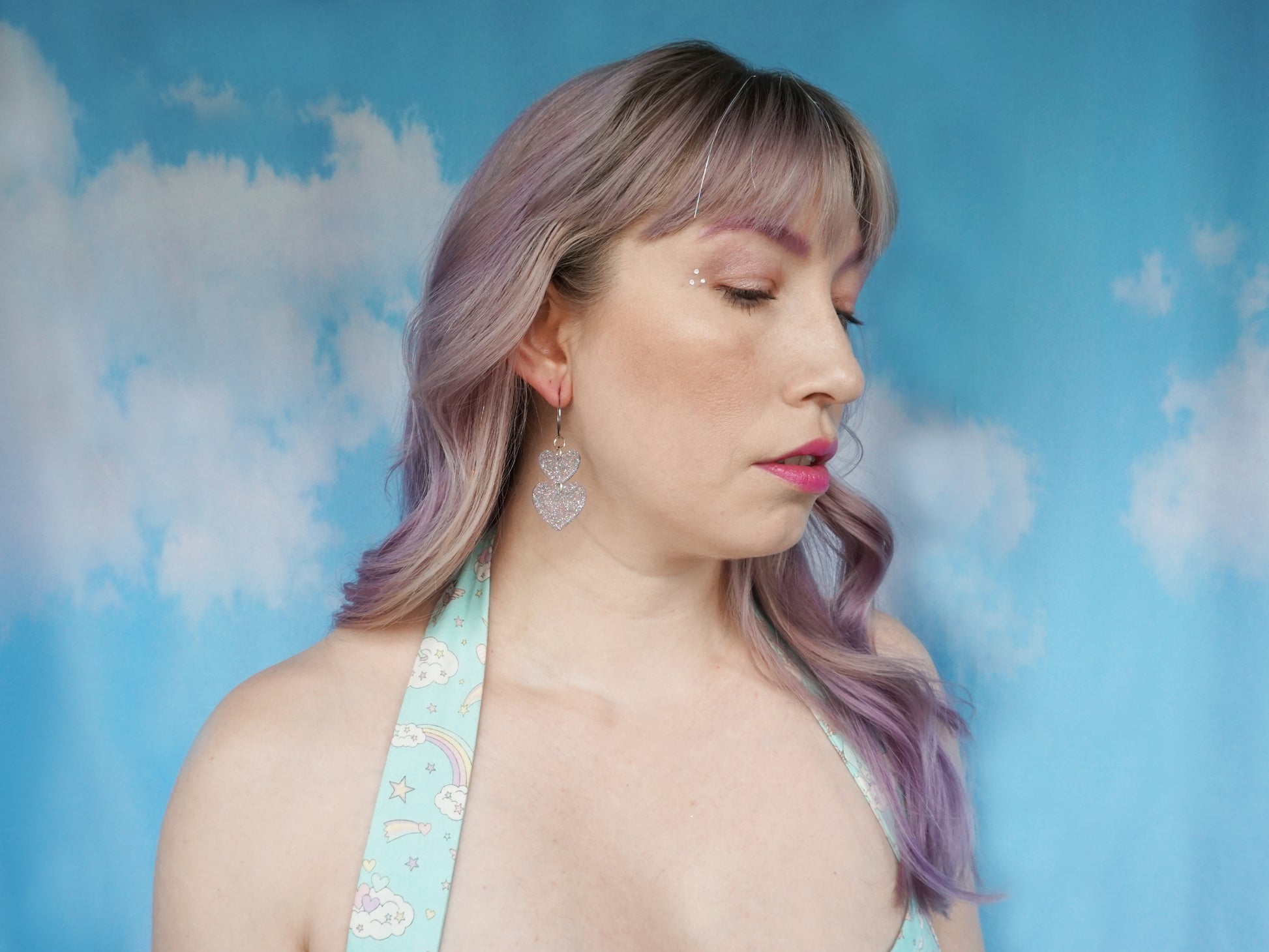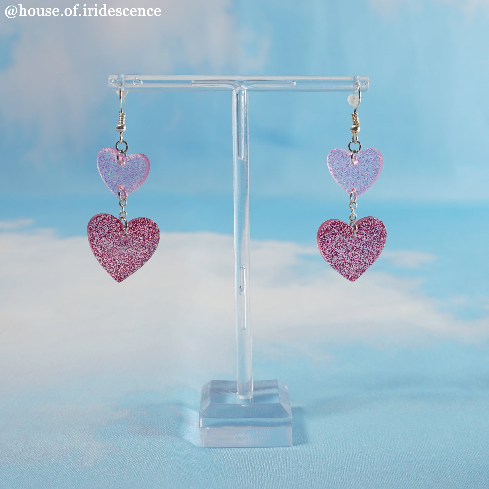 Two of Hearts..Two hearts that beat as one! Two glitter resin hearts stacked on top of each other to create these fun earrings! Available in a hook or a hoop style.