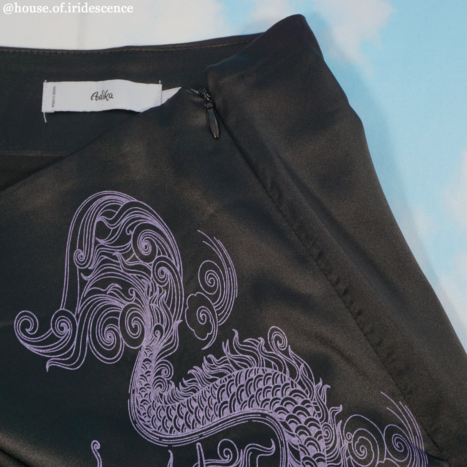 Double dragons grace the front of this Y2K mini skirt. Dress it up or dress it down!